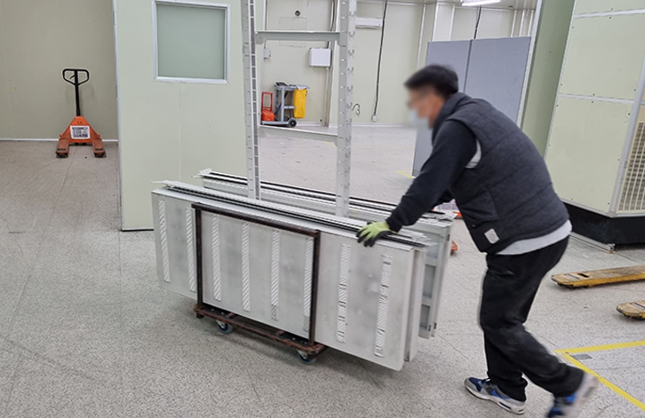 실내 반입시 업체 직원이 각 부서의 위치까지 운반을 하면 각 부서 직원은 본인 물건을 신속하게 정리하고, 안내표에 따라 물량을 유도해야 합니다.