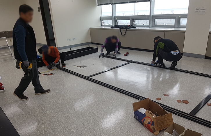 • 건물바닥과 벽의 흠집 및 파손방지를 위해 건물 관리실측과 협의