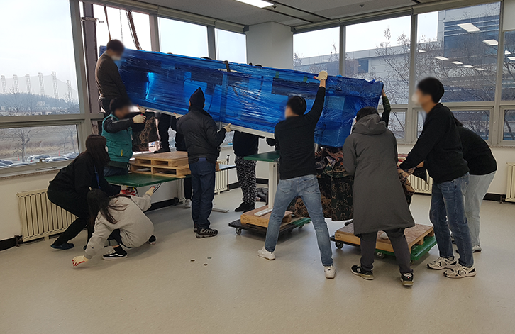 • 건물바닥과 벽의 흠집 및 파손방지를 위해 건물 관리실측과 협의