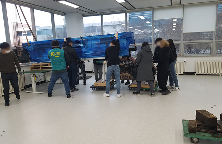 • 실내 반입시 업체 직원이 각 부서의 위치까지 운반을 하면 각 부서 직원은 본인 물건을 신속하게 정리하고, 안내표에 따라 물량을 유도해야 합니다.